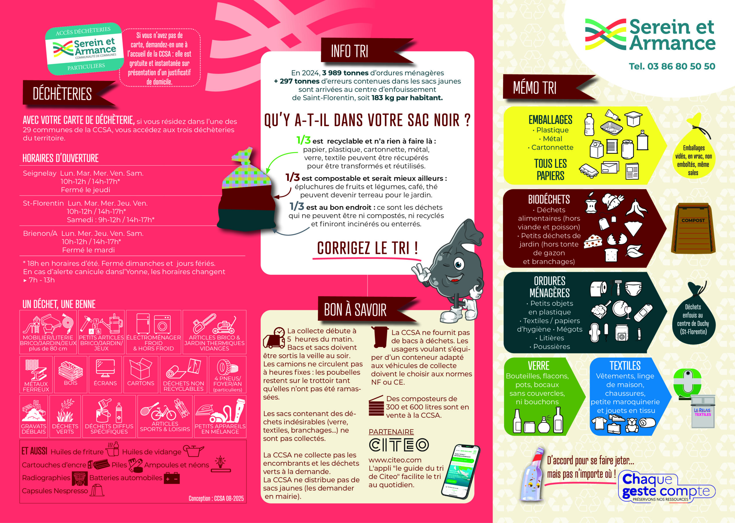 La Communauté de communes Serein et Armance exerce la compétence en matière de collecte et de traitement des déchets ménagers et assimilés avec la volonté d’assurer un service de qualité en maîtrisant les dépenses et en réduisant le volume de déchets.